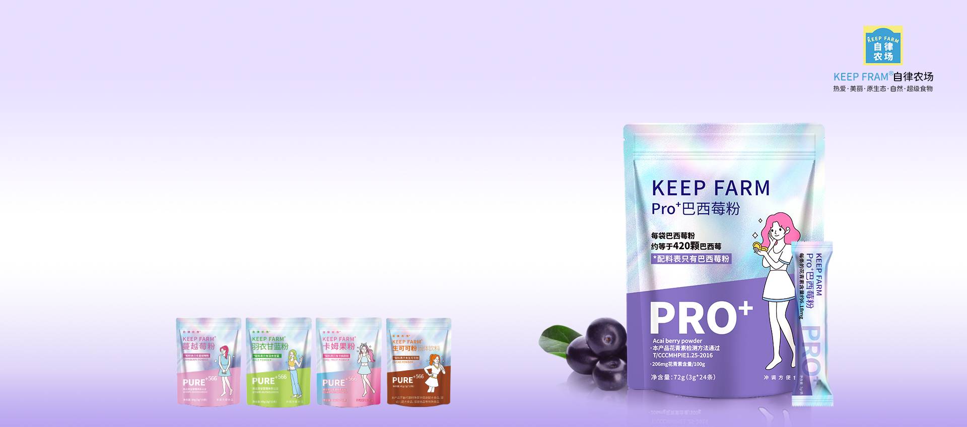 自律农场巴西莓采用巴西进口原料,经过权威检测,真正含有花青素的超级食物粉!